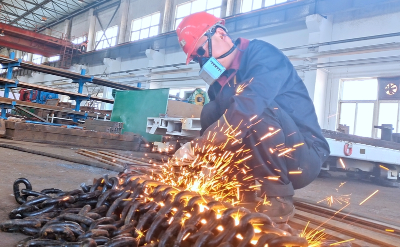 检修工在“精雕细刻”的加工单轨吊集装箱