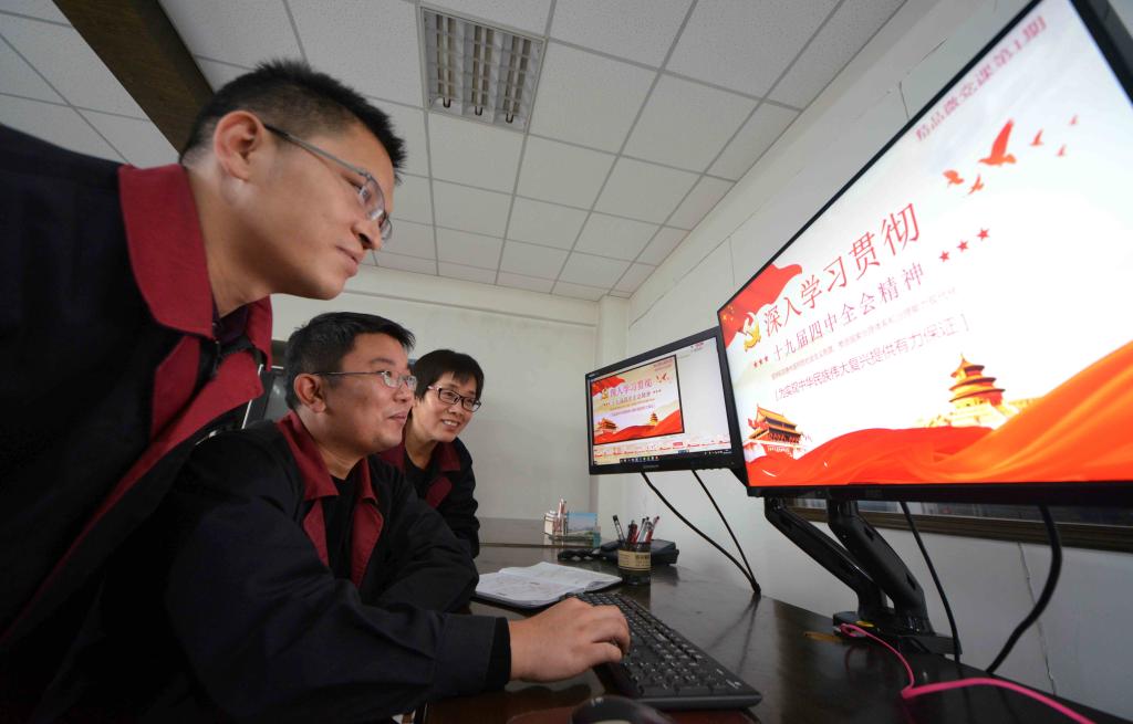 12月13日,孙疃矿政工部工作人员展示制作的中国共产党的十九届四中全会精品微课堂。