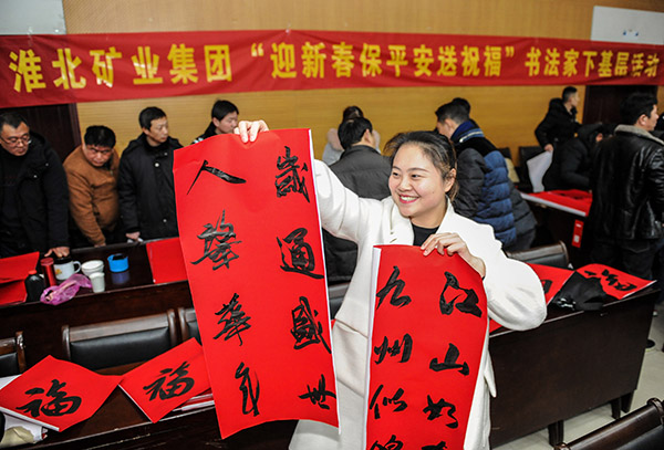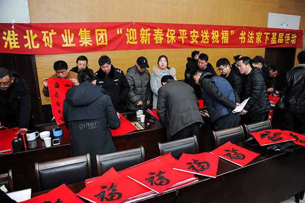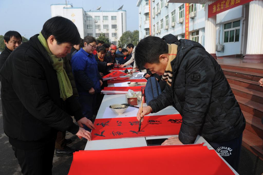 在新春佳节来临之际,1月10日下午,淮北矿区书法家协会的书法家们来到朱仙庄矿,开展“迎新春,保平安,送祝福”写春联活动。义务为职工家属写春联送祝福。
