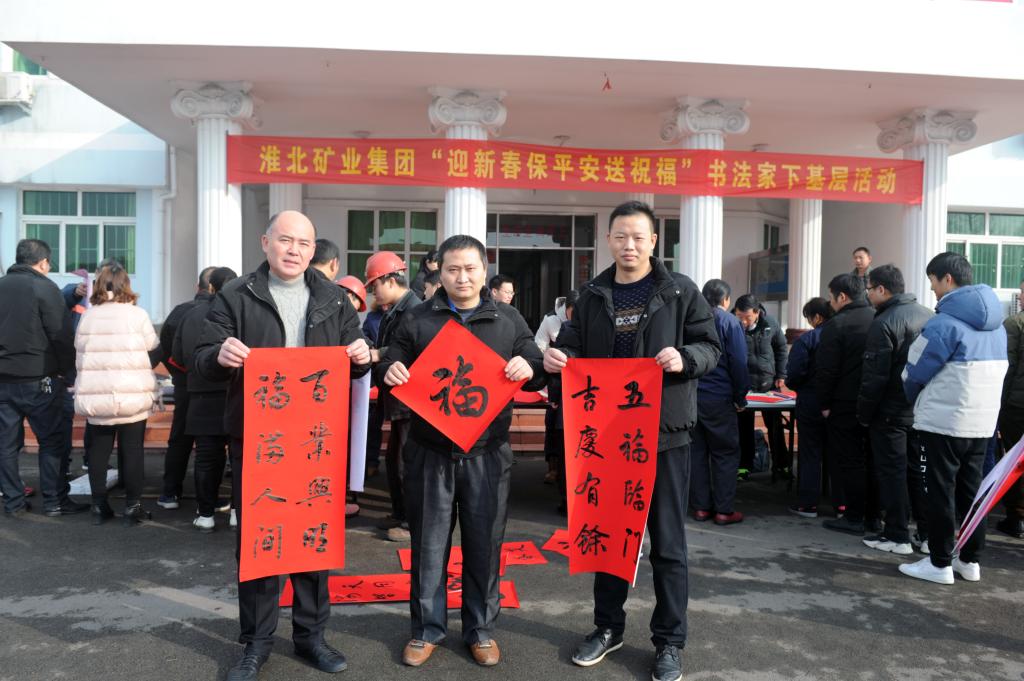 1月8日上午,祁南矿工业广场上人声鼎沸,喜气洋洋。淮北矿业集团“迎新春保平安送祝福”书法家下基层活动走进祁南矿,矿区书法家协会的资深书法家们现场挥毫泼墨,为干部职工写春联,送上新年的祝福。