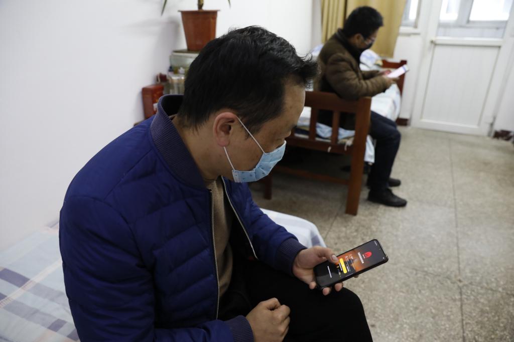 (休班职工在单身宿舍进行直播培训)