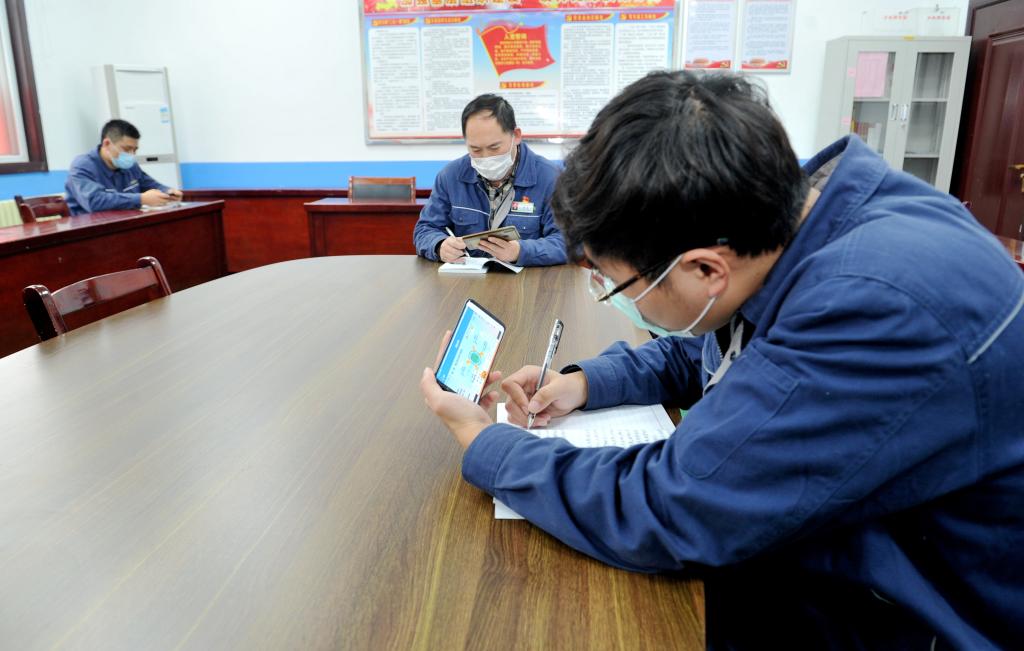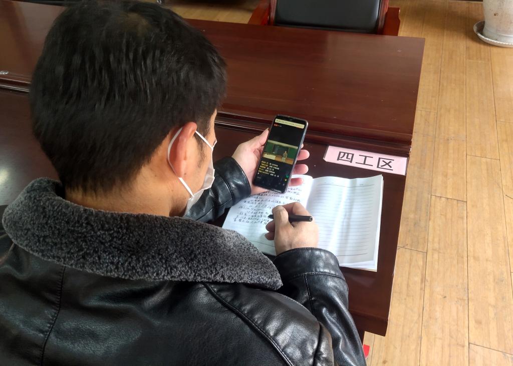 (综掘二区职工在宿舍线上学习)