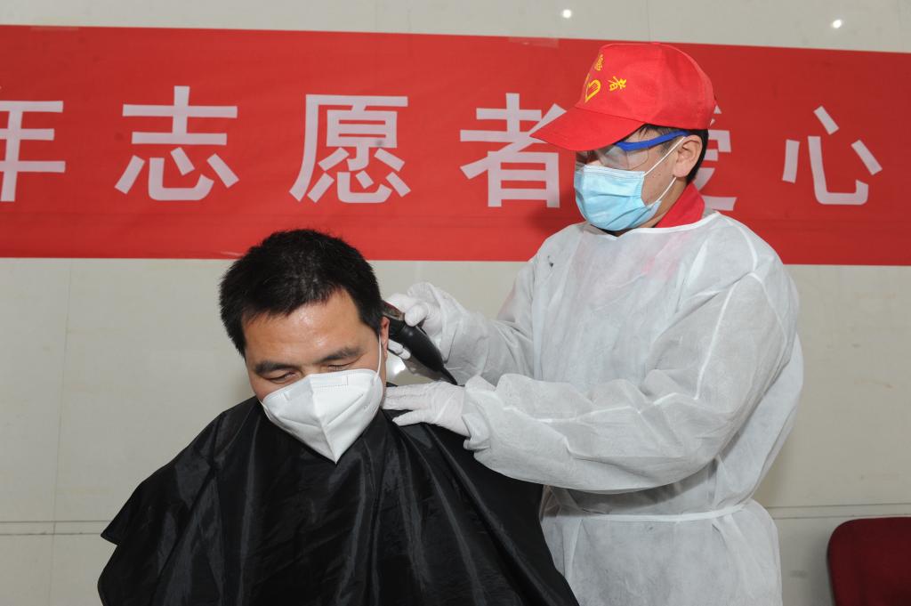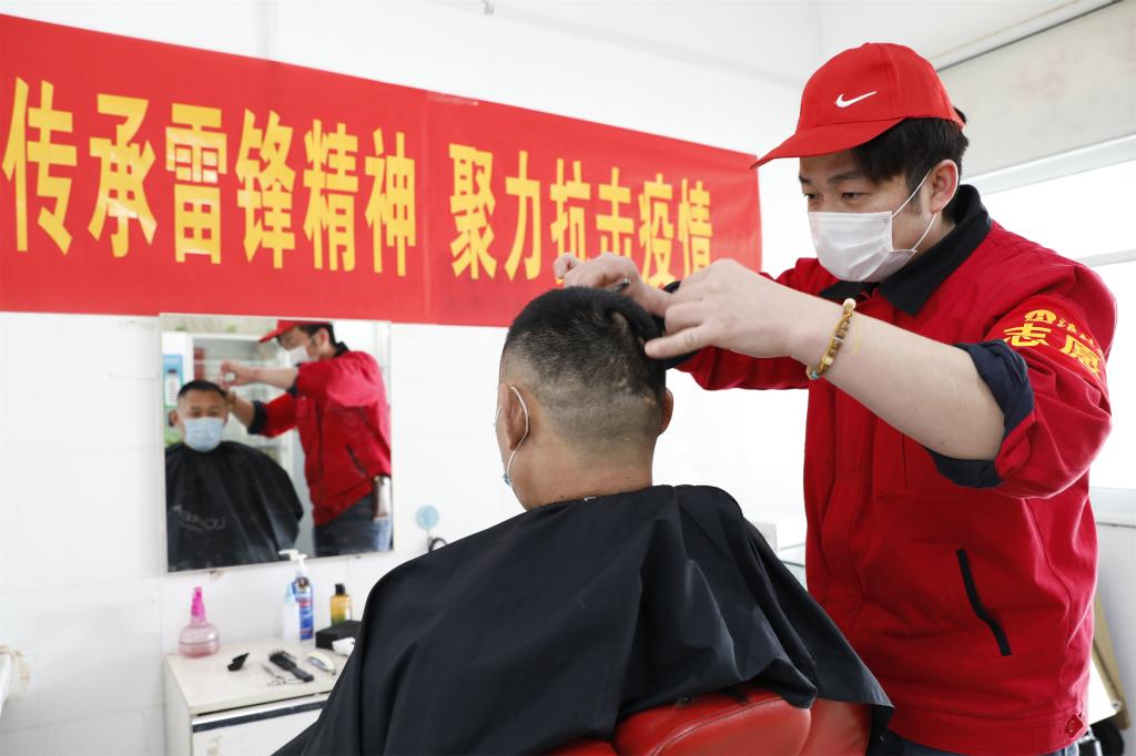 “请先测量体温、正确佩戴口罩、按照预约号登记信息后排队、保持一米距离。”现场青年志愿者们有序引导前来理发的师傅们。一场别开生面的特殊时期的特殊“学雷锋”活动开始“上演”。