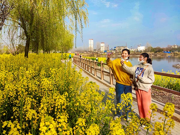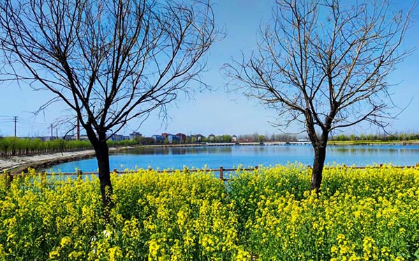 近年来,该矿因地制宜对塌陷区、垃圾堆场等进行综合治理,相继建成塌陷区护坡、栈桥、围栏等工程,同时利用矸石、粉煤灰回填技术建成了“湖心岛”绿化景观公园,使矿山天蓝水清景色美,生态环境和居民生活环境明显改善。近日,朱仙庄矿塌陷区开满了油菜花引来众人观赏。