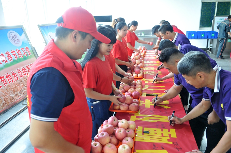 8月19日,孙疃矿工会、团委组织协安员、青年志愿者在职工餐厅开展“光盘行动+苹果”活动,凡当天到餐厅就餐的职工,餐后交上“光盘”,并在印有“厉行节约、杜绝浪费”的条幅上签下自己的名字,就可领取一个既香又甜的大苹果。据了解,这是该矿推出的“光盘行动+”系列活动中的一项。