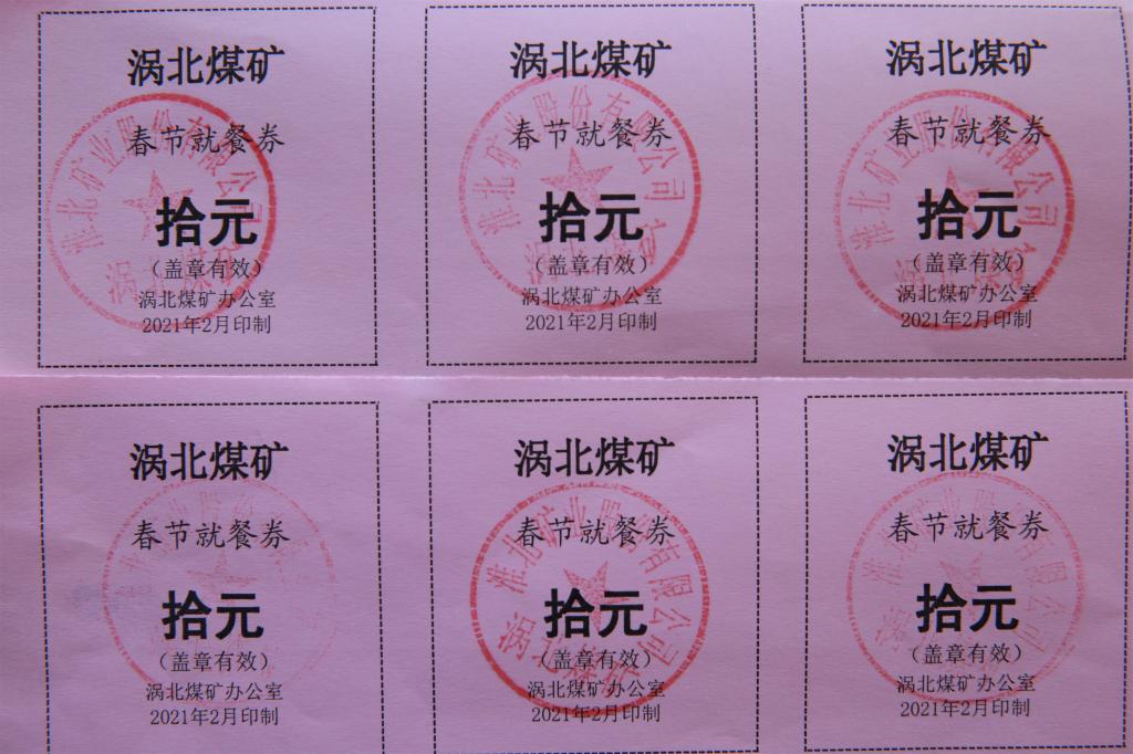 今年春节,涡北矿为全力做好防疫情、保安全、稳出勤等工作,在春节放假期间按照每天30元/人次,向留守职工发放春节就餐券,使职工在矿上乐享浓浓的年味。