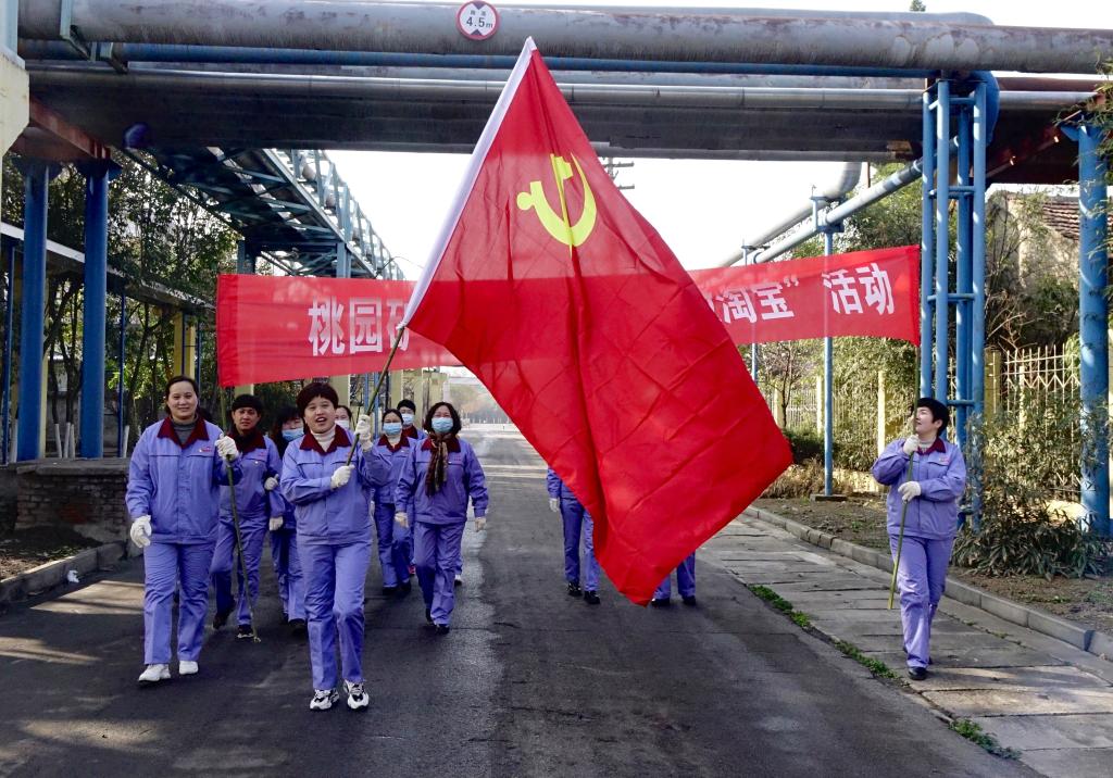3月4日,在桃园矿矸石山下的废料库,该矿机关党群党支部和经营党支部联合开展的“微淘宝”活动现场,女党员们忙的不亦乐乎。