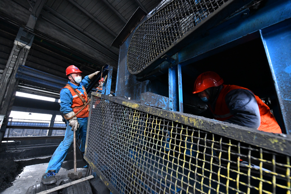 “推进来的煤过于集中,煤块也大,都蓬在受煤坑的网壁上了,下的太慢会影响进度,影响生产。”在外购煤场地南面就是受煤坑,入厂的外购煤通过受煤坑下的运输皮带拉进生产系统入洗。只见煤炭管理部副主任黄天宇正带领卸煤班的职工热火朝天的清理积煤。要说最苦最累最脏的岗位当属卸煤班了,他们不仅要装卸周边矿井从铁路线上运来的原煤,还肩负着南北区外购汽运煤的装卸任务,每天加班延点,干的都是重体力活。他们中有退伍军人、共产党员,都是个顶个铁打的硬汉,是一支能吃苦、勇挑战的团队。