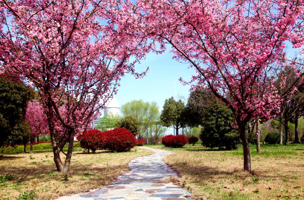 春分时节,江淮大地温度升高,雨量增加,春色愈浓。在淮河那边的华塑股份390公顷土地上,木槿、桃花、海棠、油菜花、紫玉兰、红花碧桃等花木争奇斗艳,竞相绽放。