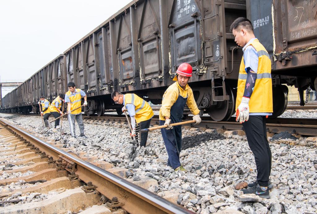 “对,干得很好!大家可别小看填道碴这样的工作,道碴要不偏不倚倒在道床两侧,这样才能起到夯实路基的作用。这会太阳热辣,咱们要沉下心,细节很重要。”临涣工务段周银祥从最基础的填补道碴讲起。