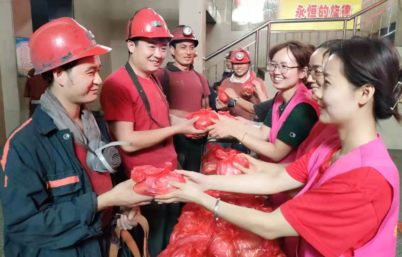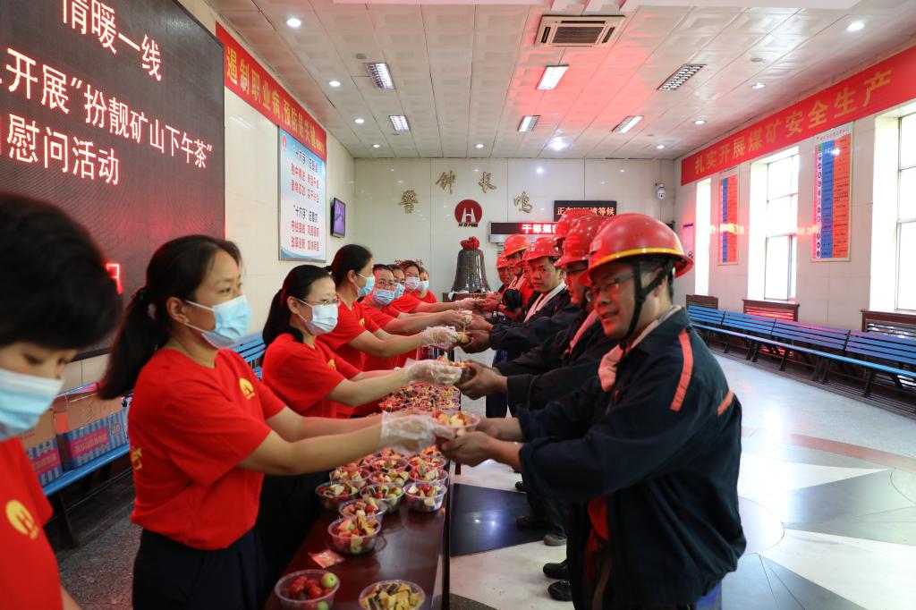 花好月圆度中秋,深情嘱咐暖心间。时值中秋佳节来临之际,9月16日中午,祁南矿组织地面机关单位女职工在井口候罐大厅开展“爱在中秋 情暖一线 扮靓矿山下午茶”井口慰问活动,在活动现场,伴随着阵阵欢声笑语,女职工为上下井的职工兄弟们送上一碗碗由月饼、苹果、千禧果等拼装而成的小食拼盘,并精心熬制了桂圆红枣茶、冰糖菊花茶供职工师傅们享用。职工们吃一口月饼、喝一口菊花茶,笑在脸上、甜在嘴中、暖在心里,并纷纷表示一定会遵章守纪,注意安全。(撰稿:赵红莲;审核:黄庆庆)