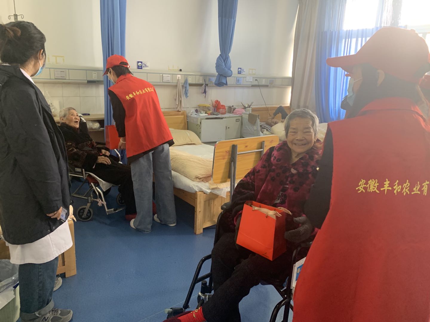 上午九点,丰和农业公司志愿者到达淮北市惠康老年公寓活动现场。志愿者们为老人表演了精心准备的配乐诗朗诵、歌曲等节目,激昂的诵读、动听的歌曲,一个个“接地气”的表演赢得了老年观众阵阵喝彩声,营造了浓厚的节日氛围。“真情关爱送温暖”,表演完毕,志愿者们纷纷撸起袖子,整理床铺、打扫房间、测量血压,以实实在在的举动让老人们再次感受到了来自社会的关爱,感受到了晚年生活的幸福。(撰稿:段宏 审核:李小伍)