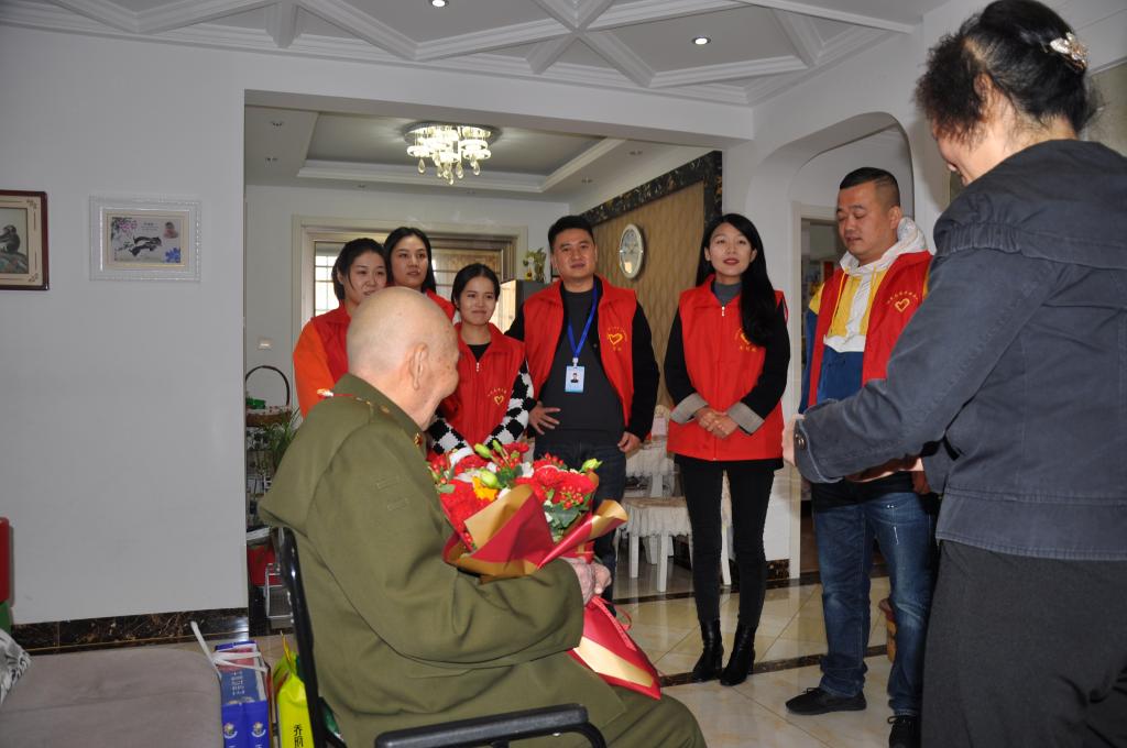 2021年10月27日,淮北矿业集团工程处与电力分公司6名青年志愿者到抗美援朝志愿军老战士宋良友家中拜访,给老兵送去牛奶、鲜花、水果及祝福。