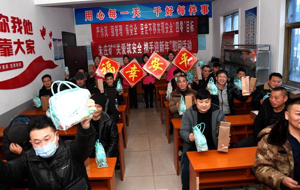 为进一步提高两节期间职工安全生产意识,朱庄矿把协安活动与“严管理、强作风、保安全”紧密结合,深入井口、班前开展安全文艺演出和安全慰问等活动,为一线职工送去暖心祝福的同时,提醒职工时刻绷紧“安全第一”思想,全力筑牢年初安全防线。图为该矿协安员到综采二区开展“关爱祝安全,携手迎新年”慰问活动。(撰稿:张宗风 审核:张娜娜)