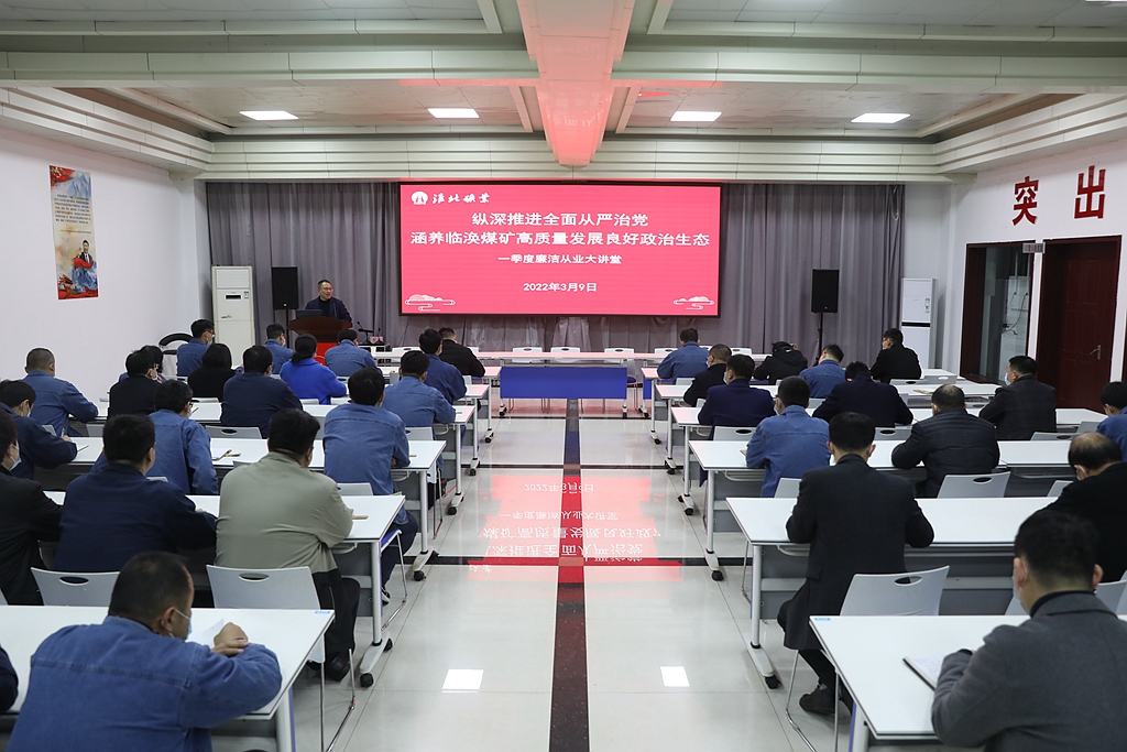 “同志们,大家赶紧坐好。今天,我们邀请纪委书记韦超同志,为我们作《纵深推进全面从严治党、涵养临涣煤矿高质量发展良好政治生态》专题授课,大家欢迎!”党群党支部书记王锋一段简短的开场白后,参加培训的党员们,把巴掌拍得“呱呱”响。