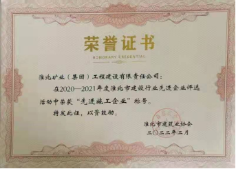 近日,工程建设公司被淮北市建筑业协会授予“2020—2021年度淮北市先进施工企业”荣誉称号,这是该公司自2017年初重新组建以来,连续四年获得该项荣誉。