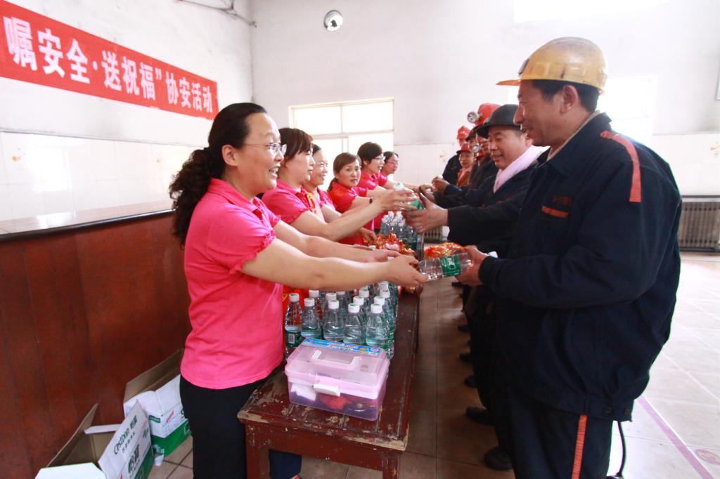 “工作辛苦了,来,吃个粽子。”、“辛苦了,喝瓶水解解渴吧。”……直到上早班的采掘一线职工全部上井后,忙碌了三个多小时的协安姐妹才拖着疲惫的身体圆满地结束活动。