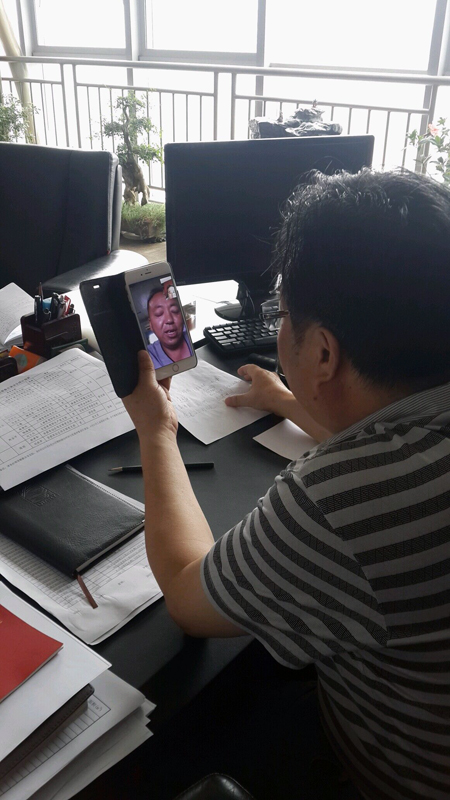 图为党委委员周会平与土建建通党支部(定远盐化)新党员、施工队长薛继传微视频谈话