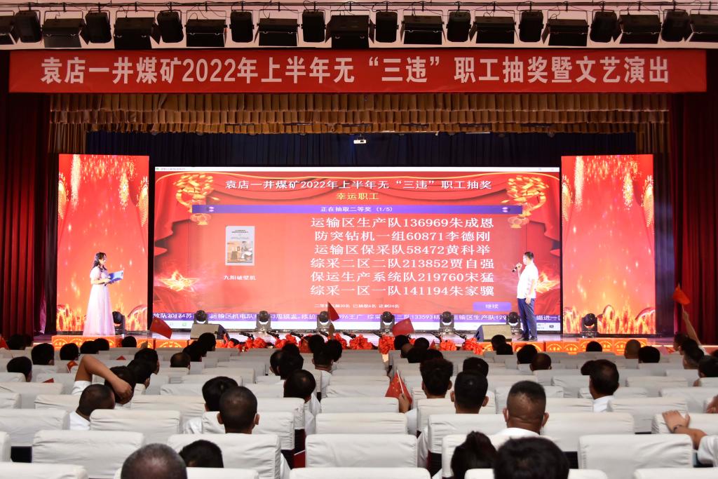 “嫂子,我在抖音直播间看你上大舞台了,那几个大屏幕真气派,还有现场抽奖,你抽到啥大奖了?”袁店一矿2022年上半年无“三违”职工抽奖活动现场,综采一区职工房明家属张静刚刚走下舞台就接到远在上海表亲发来的信息。“我家那口子连续三年没有违章,矿上年年发放奖励,今年更特殊,邀请我去现场抽奖,没想到小时候的舞台梦在矿上实现了。”张静开心地回复。