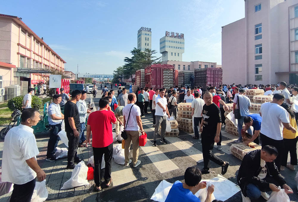 “走,赶大集去,听说这会广场上正在发月饼和鸡呢。”一名正在往发放现场去的职工满脸笑意对其工友说道。早上八点不到,职工们签字登记排队领取矿工会准备的活鸡和月饼,手推车、三轮车都派上了用场,卸货、分装、领取各项工作有条不紊,现场热闹非凡。