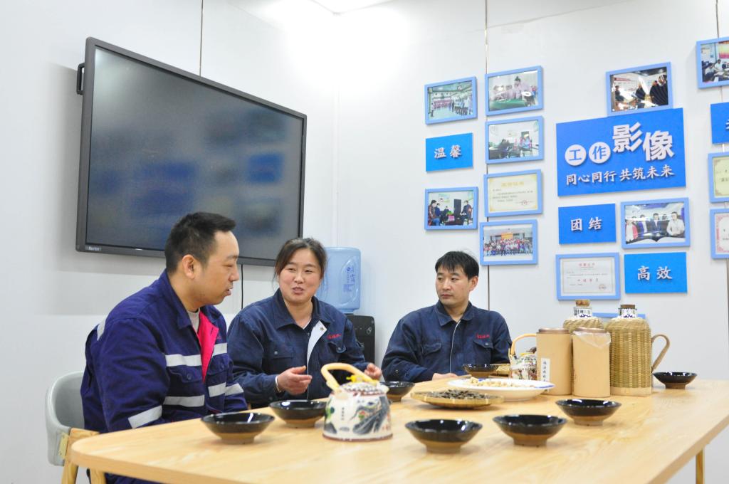 “一壶茶是一种雅意,亦是一种生活”。近年来,青东煤业围绕新区文化生活单调、职工远离亲人、安全生产及疫情防控等问题,突出刚性制度柔性关怀,建设“青东茶社”,设立“谈天说事室”,以“喝茶”为桥梁,以“唠嗑”为纽带,将“茶文化”融入职工的生活,在喝茶品茗中了解职工所思所想,帮助职工解决所急所盼,让职工的“烦心事”在喝茶中烟消云散,也将对职工满满的“爱”沏在一壶茶中。