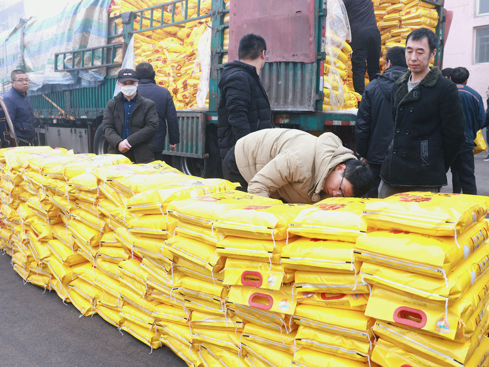 1月11日一大早,朱仙庄矿工业广场便热闹起来,“走,赶大集去,听说现在广场上正在发大公鸡呢,过年正好不用买了。”一名正在往发放现场去的职工满脸笑意对其工友说道。早上八点,职工们签字登记排队领取矿工会准备的活鸡、大米和食用油,手推车、三轮车都派上了用场,卸货、分装、领取各项工作有条不紊,现场热闹非凡。