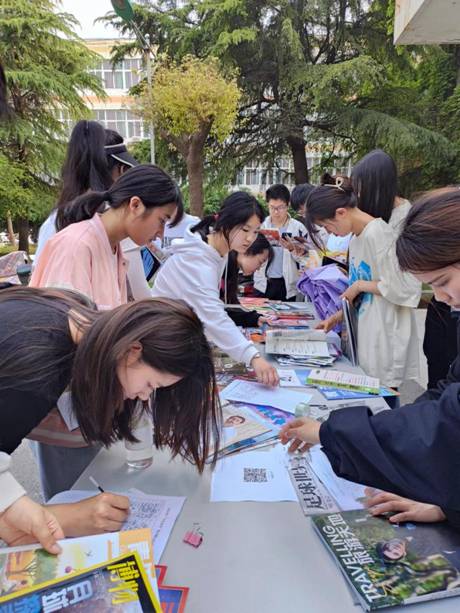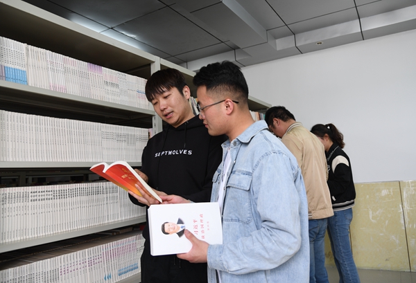 近日,安徽矿业职业技术学院以线上线下相结合的形式开展“4·23世界读书日”系列活动,包括“书有余香”期刊赠送活动和中华经典诗词摘抄硬笔书法比赛、“筑梦青春 强国有我”线上知识竞赛。图为4月20日下午学生在图书馆前挑选心仪的期刊。(撰稿:王永生 任玉慧 审核:黄锐)