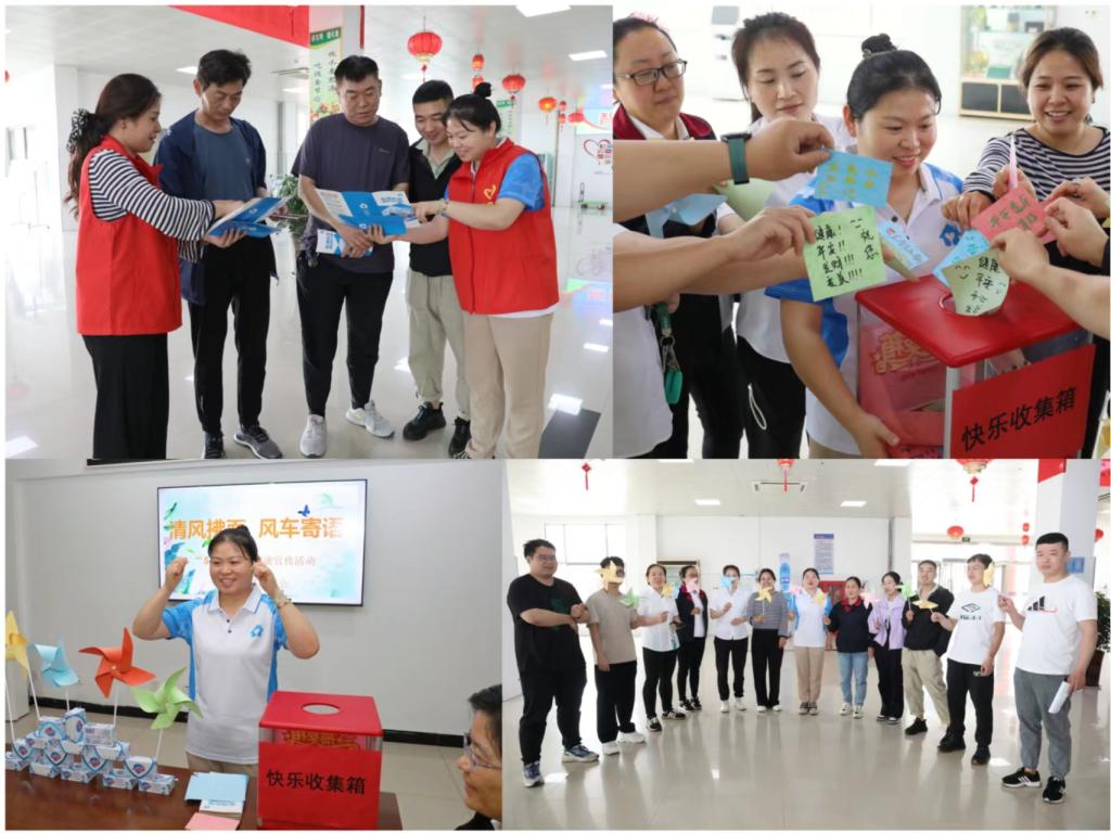 在“5·25”心理健康日到来之际,相王健康组织开展“以文疏导、以情舒心”手工制作风车等多种载体,向广大员工普及心理健康知识,帮助职工缓解工作、生活压力,塑造积极的阳光心态,以良好的精神面貌投入到工作中。(撰稿:吴敏 审核:刘敏)