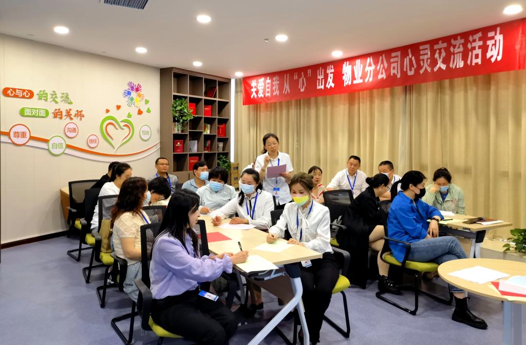 5月23日,物业分公司举办以“关爱自我 从‘心’出发”为主题的心灵交流活动。