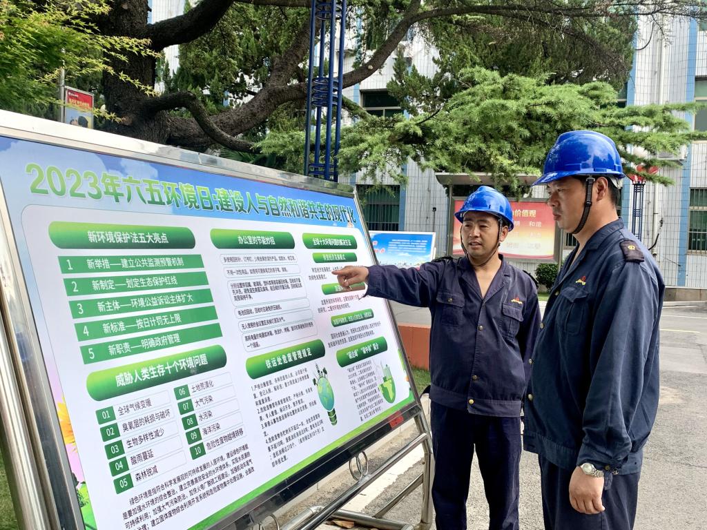 在第52个世界环境日到来之际,6月2日,童亭矿围绕“建设人与自然和谐共生的现代化”开展了“6.5”世界环境日主题宣传活动。在矿工业广场摆放环保宣传牌板,宣传环境保护法律法规,传播绿色矿山理念,增强职工参与环保工作的光荣感、使命感和责任感。