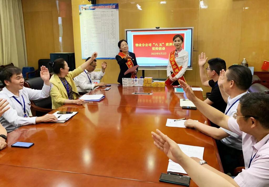 6月2日下午,物业分公司组识职工观看了《美好安徽》环保宣传片,工作人员向大家宣读了环保倡议书,号召大家从自我做起,保护环境、节约资源、倡导环保,共同创造美好的矿区。接着又开展了环保知识竞赛抢答活动,大家积极参与,齐心协力的回答问题,争相献策。 此外,又组织工作人员深入岗位及住户小区,认真听取职工、居民对环保问题的意见和建议。(撰稿:薛全 审核:张亮)