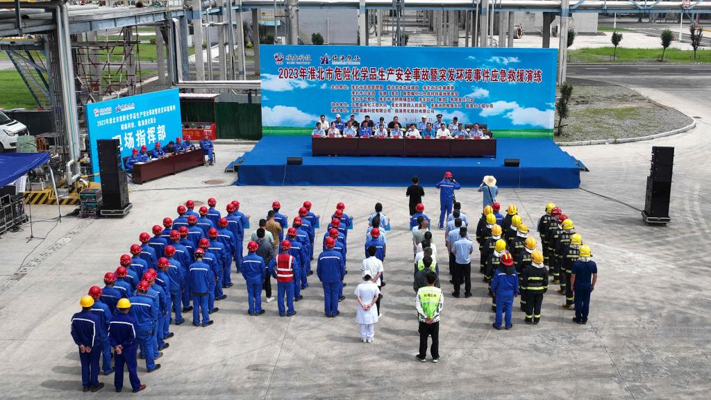 为进一步提高安全生产领域突发事故处置的综合水平和能力,6月21日,2023年淮北市危险化学品生产安全事故暨突发环境事件应急救援演练在安徽碳鑫科技有限公司举行。