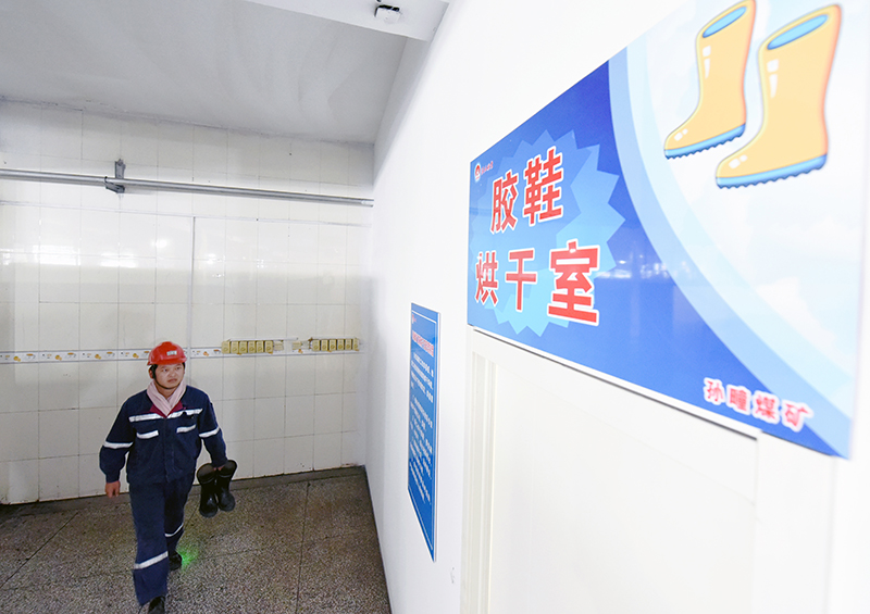 “职工浴池目前有6台柜式空调,冬暖夏凉。梳妆台上发乳、啫喱等护理用品,以及吹风机等免费使用确实很暖心。”修护准备区职工赵强说。今年以来,该矿先后投入2100个智能更衣箱,职工刷脸即可享受智能服务。建成毛巾晾晒室和胶靴烘干室,有效解决了毛巾晾晒和胶靴潮湿、有异味的问题,并于4月份成功承办集团“两堂一舍”现场会。8月份,又新增2台智能电控胶靴烘干机,持续为一线职工提供优质服务。