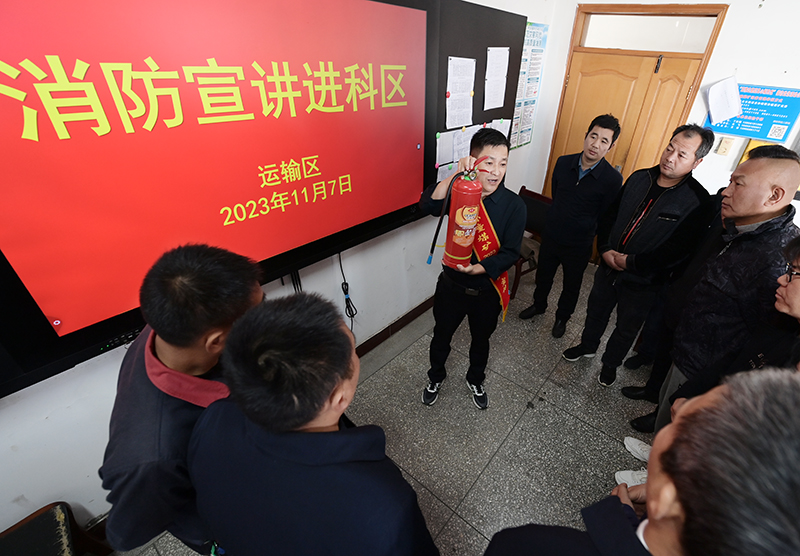 活动现场,该矿宣讲人员结合煤矿消防工作的特点,以“预防为主,生命至上”为主题,详细讲解了火灾现场逃生自救常识、常用消防设施的正确使用及注意事项等消防知识。同时,该矿组织干部职工进行了正确使用灭火器的实操培训。