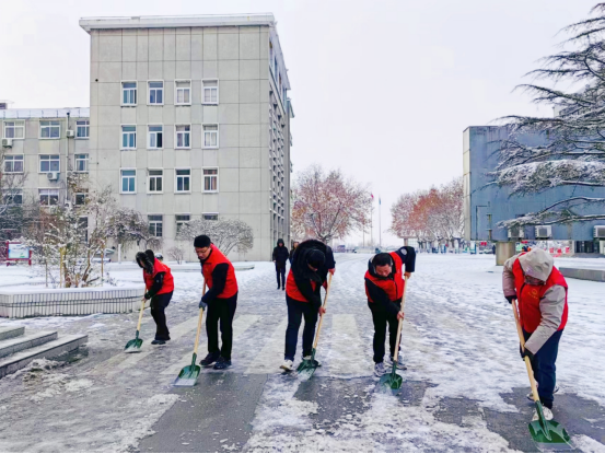青年志愿者们冒着严寒,或握帚扫雪、或挥锹铲雪,全力清除路上的积雪和暗冰。铲雪、除冰、清运,各个岗位协同作战、配合默契,同时温馨提醒职工“小心路滑”“慢点走,注意安全”,青年志愿红成为了冰天雪地里一道靓丽风景线,为寒冷天气增添了别样的美丽。经过不懈努力,青年志愿者们将主要通行道路、办公楼前等区域的积雪暗冰全部清理干净,保障广大干部职工出行安全。