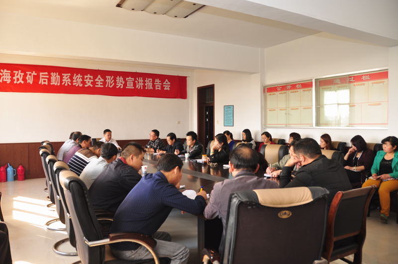 10月9日下午,海孜矿后勤系统安全形势宣讲报告会在物业管理科四楼会议室召开。矿工会主席李良友作《认清形势 狠抓落实 切实抓好安全管理工作》专题报告。物业管理科、社区中心班队长以上管理人员和部分职工代表聆听讲座。