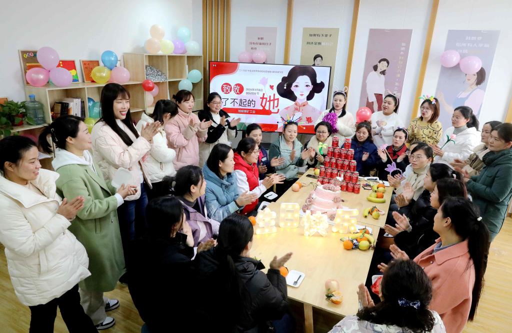 三月芳菲始,花开正当时。为进一步丰富矿井女工的精神文化生活,鼓励矿井女工凝心聚力、担当进取,充分展现巾帼风采,在第114个“三八”国际妇女节来临之际,朱仙庄矿精心策划了女工DIY手工制作、普法宣传、趣味运动会等一系列活动,为广大女职工送上了诚意满满的节日祝福。(张丽霞)