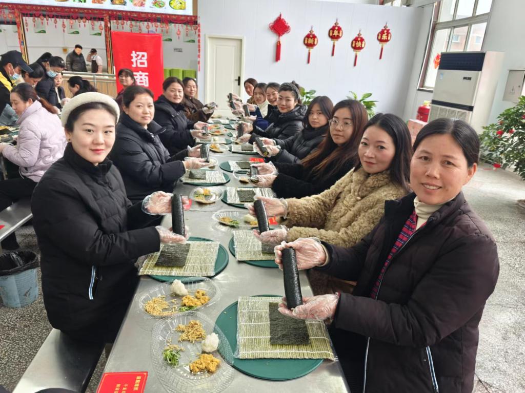 3月6日一早,在职工食堂内,童亭矿联合招商银行共同举办的“三·八”节系列活动之“寿司DIY,共同庆祝属于她们的节日,并为全体女工发放了节日纪念品保温壶套盒。(李靳靳)
