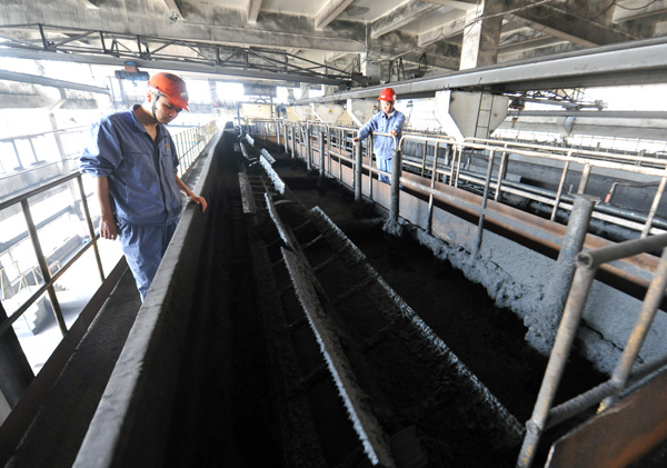 面对煤炭市场严峻形势,淮北选煤厂主动对接市场,以满足客户多样化需求为抓手,在调整煤炭产品结构上下功夫,开展了煤炭配比和改性研究,为客户提供专属煤炭配方,拓展利润空间。图为:10月14日,该厂两名职工正在巡视选煤设备。