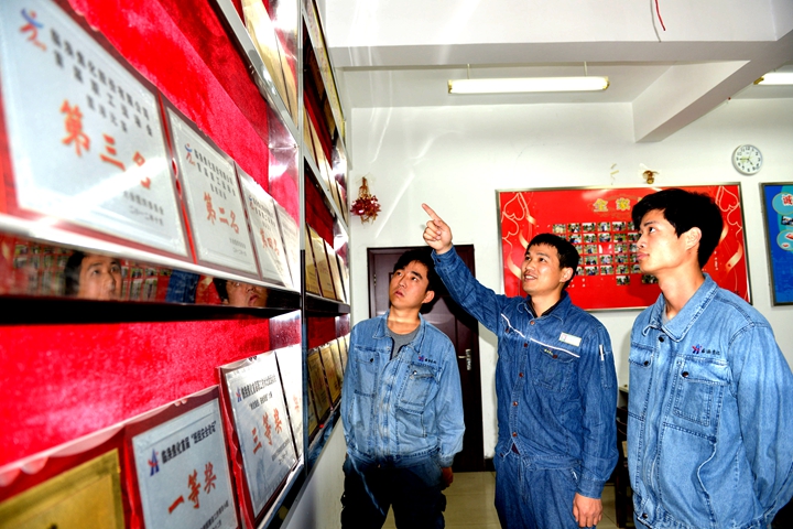 “一人强不算强,大家强才是强。”郭大方所在的班组原有职工16人,去年11月份和今年5月份又新增两批技校毕业生,文化素质和业务素质参差不齐,作为班组领头人,郭班长深感自己肩上的压力和责任。于是,他就利用各种场合做好“传帮带”,在班中定期组织业务学习、“岗位双述”背诵、应急演练和中控操作,手把手传授业务技术,努力帮助新员工成长成才。经过不懈努力,一批新员工逐渐崭露头角。在刚刚结束的第二场新员工班组擂台赛中,该班组3名新员工参赛,其中,郭班长21岁的徒弟邵创业熟练的“双述”演示、流利的工艺流程讲述和精准的回答问题,获得了观众和评委的一致认可,最终,甲醇车间荣获比赛第一名。“帮助班组员工成长成才,自己就感到有成就感,况且工作捋顺了,也是在帮助自己。”不善言谈的郭班长还有些腼腆。目前,这个班组成员“学业务、赛技能”已蔚然成风。