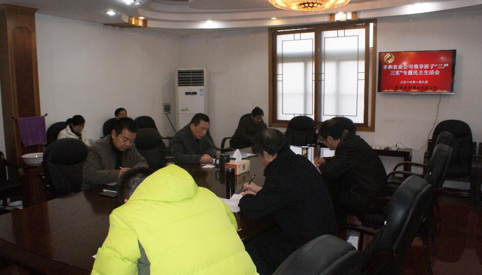 1月8日上午,丰和农业公司在三楼会议室召开了“三严三实”专题民主生活会。公司领导班子成员、各部室负责人参加了会议。领导班子成员结合自身实际,紧扣“三严三实”主题,认真查摆自身在“修身做人、用权律己、干事创业”等方面存在的主要问题,深刻剖析问题产生的原因,开展批评与自我批评,明确下一步整改措施。
