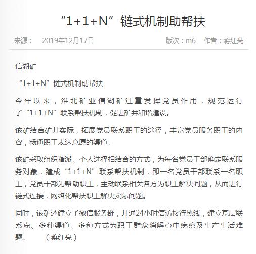 《中国煤炭报》:淮北矿业集团信湖矿“1+1+N”链式机制助帮扶