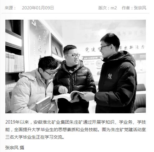 《中国煤炭报》:淮北矿业集团朱庄矿提升大学毕业生思想素质和业务技能