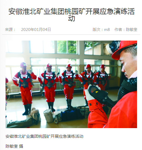 《中国煤炭报》:淮北矿业集团桃园矿开展应急演练活动