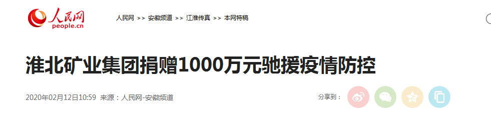 近日,淮北矿业集团通过安徽省红十字会定向捐赠1000万元(其中,淮北矿业控股股份有限公司捐赠600万元),用于支持安徽省抗击新冠肺炎疫情,助力打赢疫情防控阻击战。