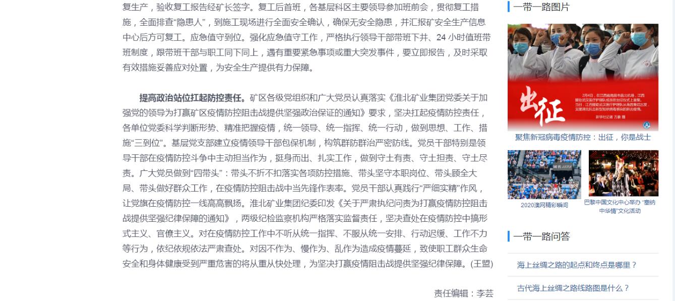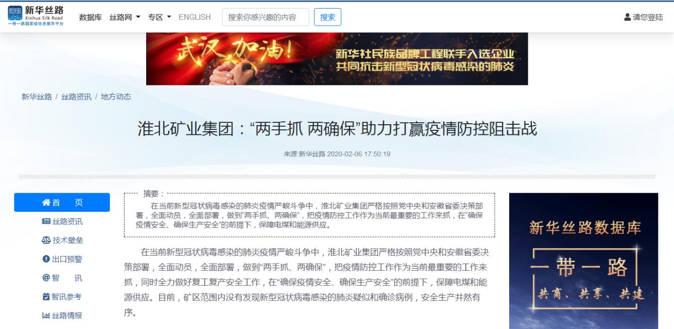 《新华网》:淮北矿业集团:“两手抓 两确保”助力打赢疫情防控阻击战