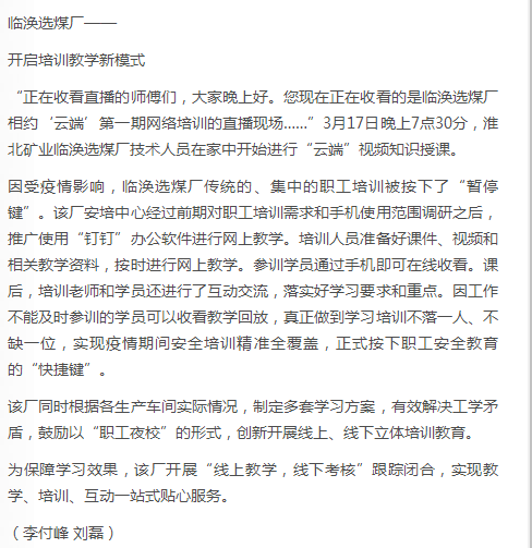 《中国煤炭报》:淮北矿业集团临涣选煤厂开启培训教学新模式