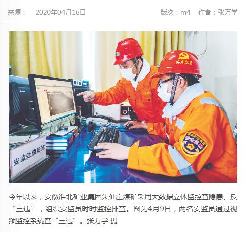 《中国煤炭报》:淮北矿业集团朱仙庄矿大数据查隐患反 “三违”