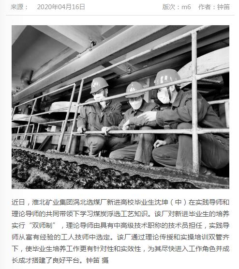 《中国煤炭报》:淮北矿业集团涡北选煤厂“双师制”搭建成才平台