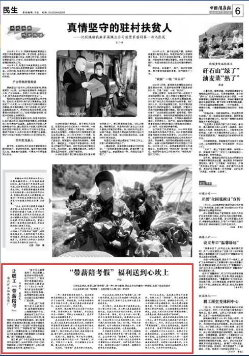 日前,该厂为使职工在子女参加中考、高考期间能够安心照顾和陪护子女,提前发布了关于子女参加2020年中考、高考的职工给予陪考假的通知。职工陪考期间,休班视同正常出勤,在电子请假系统请假“事由”一栏注明“中考陪考或高考陪考”即可。“‘带薪陪考’是厂里新推出的又一项惠民政策,让大家感受到企业大家庭的温暖,不断增强职工的幸福感。”该厂党委负责人表示。